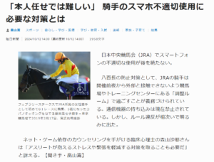 2024年10月12日付の毎日新聞における「「本人任せでは難しい」 騎手のスマホ不適切使用に必要な対策とは」の記事に心理師のコメントが掲載されました。